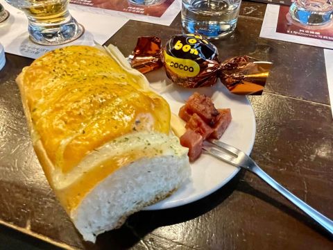 實在太精采了!連續五年得到IWC世界最佳調酒師榮譽的史蒂芬尼Stephine Macleod。搭配很棒的下酒菜,麵包、鱈魚起司、綜合滷味盤、巧克力。