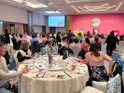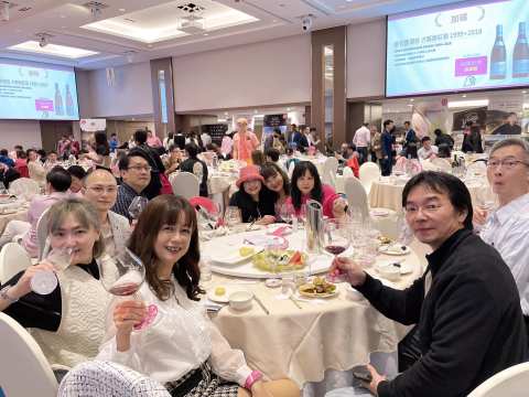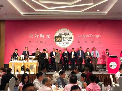 主持人介紹來自世界各地酒莊代表上台,與台下同歡
