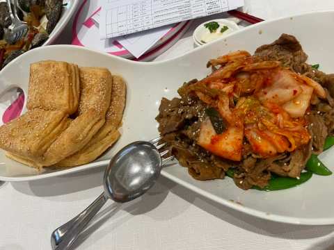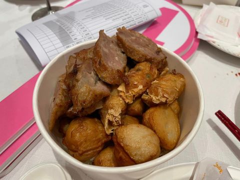 一開始上的菜是用免洗餐盤,把我們嚇一跳,後來問服務生,原來前菜是一系列台灣小吃,蒐羅自各家名店,一口氣吃到這些下酒小菜也是福氣
