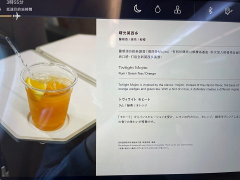 特調不會主動給乘客,要跟空服員說,登記座位,於發完餐點於飲品後,才按登記發特調酒精飲。淡淡的,微甜,沒什麼味道,算是體驗過了。拍照好看