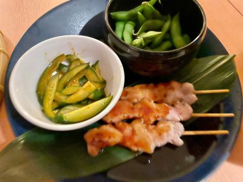 不用煮食的熟雞肉串與小菜