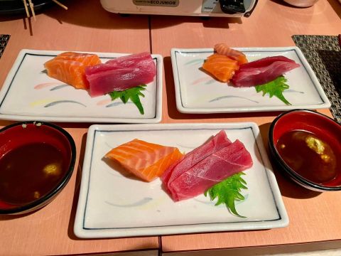 和Daichi主餐廳有一到活動門,在這裡用餐仍可以取用主餐廳的食物(無限),今天有生魚片很不錯,我們過去拿了好幾盤…