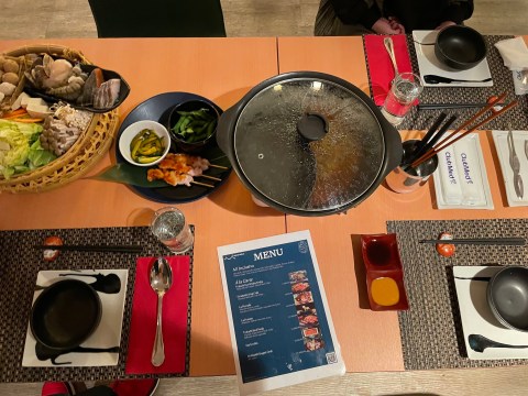 Club Med第三天晚餐,享用前一天就預約好限定的Mina Mina餐廳,吃北海道原住民阿依努族傳統火鍋🍲 新鮮海鮮蔬菜等,雙鍋好吃,加點帝王蟹鮮甜😋口味和台灣常吃到的重口味不一樣,品嘗食材鮮甜原味的!