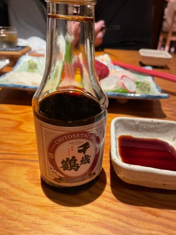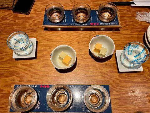 點了必喝的「限定純米吟釀樽生酒」、三款千歲鶴吟風套裝、秘藏古酒;店裡沒有中文菜單,隨意亂點,每道菜我都一直喊好好吃!