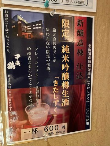 千歲鶴是札幌唯一酒造,酒廠就在市區近郊,這是酒造直營的居酒屋,當然要來拜訪!