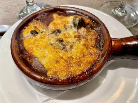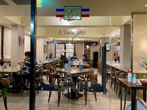 招牌法式焗田螺。有人點了第二顆法國麵包來沾田螺醬,超讚的