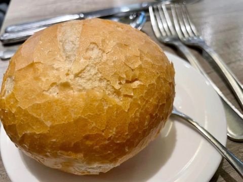 好吃的法國麵包、奶油,非常酥脆,總是吃得一桌面麵包屑
