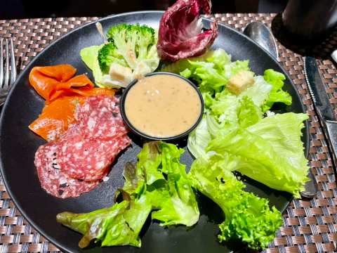 第二輪 生菜沙拉與煙燻鮭魚、火腿