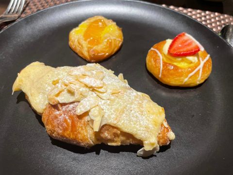 第五輪 從琳瑯滿目的法式麵包中,挑出幾個想吃的~糖霜杏仁可頌🥐、草莓布丁麵包、蜜桃甜派