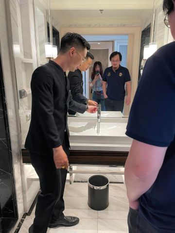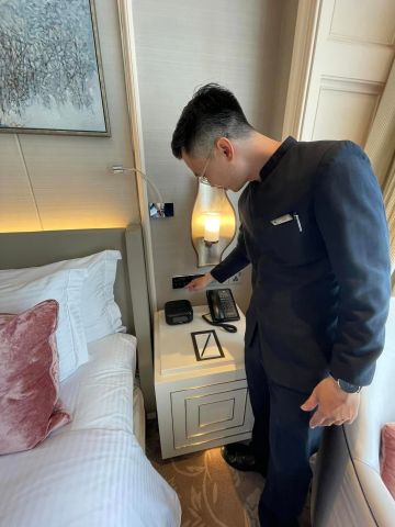 服務員介紹房間設施