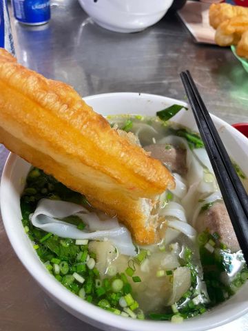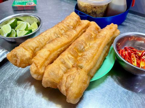 越南油條,很Q有嚼勁。有點像金門的油條,但更大條。有人沾著牛肉湯吃,我則喜歡不沾湯,配著吃,享受它香Q的咬勁。