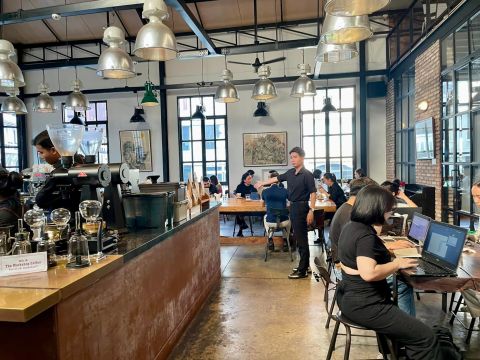 中島式咖啡吧台立於咖啡館中央