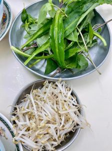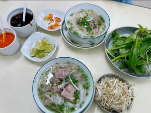 點了包含生牛肉、牛里脊、牛腩的Mix Beef Phở (小碗越盾70,000,約新台幣90元)。湯頭相當清甜,加上生菜、豆芽、檸檬汁、2種醬(越南辣椒超辣,加2小片就好)超級美味的早餐!