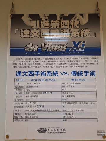 8:00進手術室果真好大,看到傳說中達文西手臂和主治醫師,接著就在氧氣面罩下昏睡