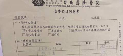 3.術後主治醫師查房,問我要不要打一針長效預防復發的,想說開刀真的辛苦,就預防一下吧,一簽名竟然要1萬2千多(再剝皮)
