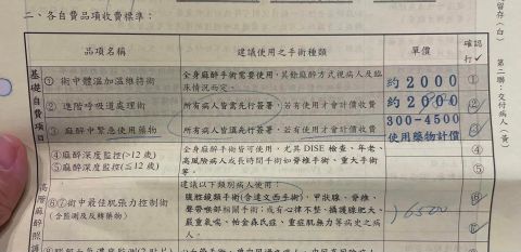 1.麻醉評估,麻醉科洋洋灑灑列出我也不懂的自費項目,說一般人都有選,那就選吧(剝皮)