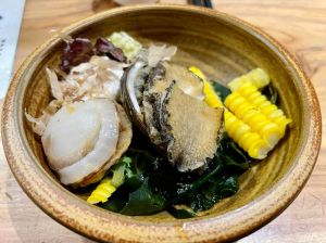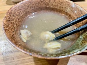 蝦蟹湯底的味增湯,有8顆蛤蜊