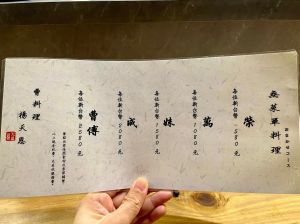 曹料理一共有5種價位,我們上回拜訪想說由簡入奢,吃580的「榮」,一夥人大讚驚為天人,這次則解鎖1080的「萬」。