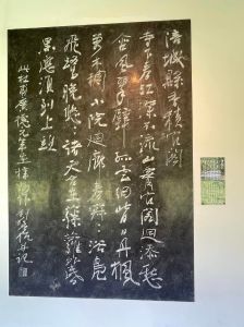 本以為走到腳快斷卻沒看到杜甫的作品,被一位小哥提點,才知道原來整個園區都是歷代書法名家抄寫的「杜甫詩集」。