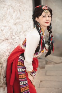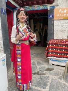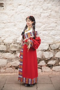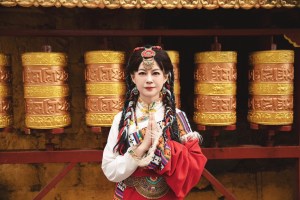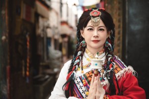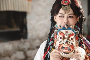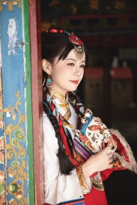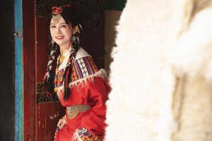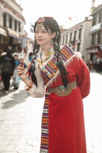 在因低血氧胸悶打完高山症治療的點滴,立馬參加雪頓節慶典,連跑哲蚌寺、色拉寺看曬超大唐卡,一天2萬5千步;隔天拜訪大昭寺、登布達拉宮,在連續近乎行軍般旅行下,累癱瞇著眼,也要擠出時間拍個旅拍!這天大約下午6點半到達旅拍店,半小時化妝、半小時拍攝,很迅速的一個多小時就完成了旅拍,在拉薩八廓街頭。