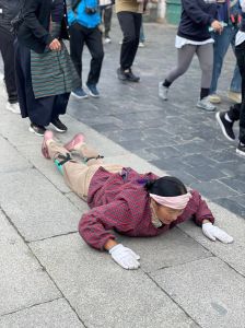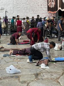 他們都常很遠的地方,磕長頭朝大昭寺前進