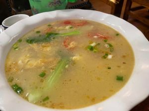 這裡的雞是雞蛋,佐西紅柿、青菜…的湯。濃郁好喝。(只是原本聽名以為是雞肉湯)