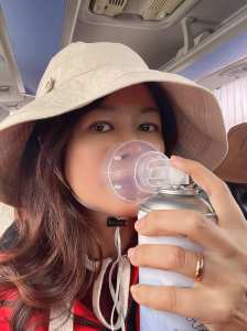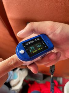 下車拍照、上車隊醫幫每個人測血氧,血氧71%立馬吸氧…