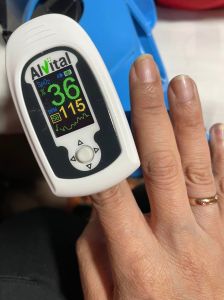 搬完放置好行李(其實只有2包,主要是背氧氣鋼瓶),感覺喘,血氧一量破次行紀錄只有36%,趕緊吸氧氣。