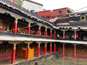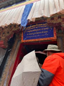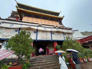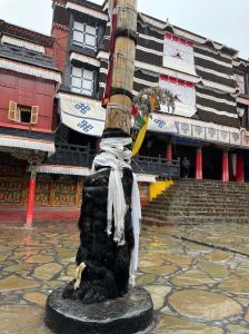 措欽大殿(大雄寶殿),早課(5:30-8:00)晚課(6:30-7:30)都在這裏;地上有一塊黑色的石頭提醒大家多做善事,可以找師父點燈,也可以寫祈福紙投入祈福箱。