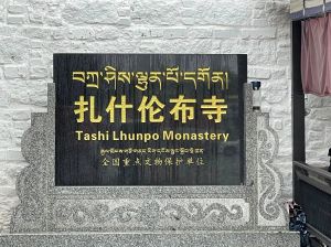 第一世達賴喇嘛根敦珠於1447年,為紀念釋迦摩尼佛誕生、成佛、涅槃而建。又經歷代班禪擴建,是日喀則最大寺廟。也是歷代班禪的駐地(達賴喇嘛為前藏的布達拉宮),曾經是後藏重地的政權統治中心。寺內供奉有高26米世界上最大的室內銅鎏金佛坐像「強巴佛」(即彌勒佛像)