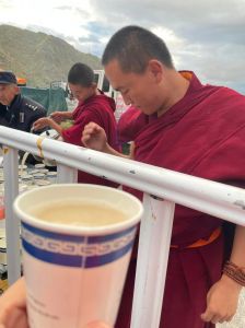 這杯是雪頓節往哲蚌寺參加展佛大典路上僧人提供的酥油茶,導遊說這杯是好喝的。