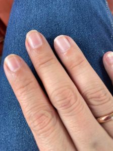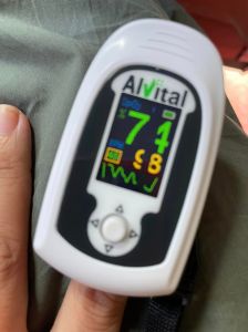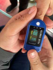 路途上,指甲紫紫的,今日血氧73%、平靜心跳122下。