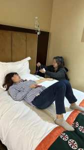 晚上醫生到飯店房間檢查健康,血氧持續不到80%,其實還會胸悶,醫生飯店房間查房建議治療,打針💉治高反。點滴加藥和屁股各一針。人民幣680元。