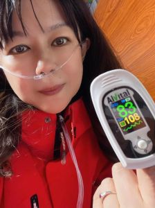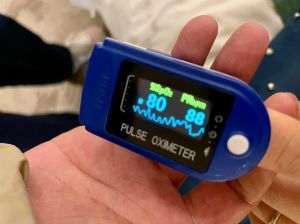 趕緊休息、吸氧10分鐘,血氧回復到83%。