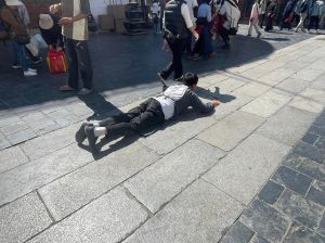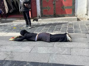 大昭寺前科磕長頭的虔誠藏人,到這裡磕長頭是許多藏人一輩子的願望