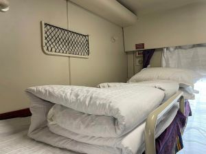 床單沒換,乘務員進來將棉被折一折給下一個客人用
