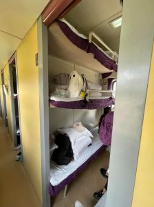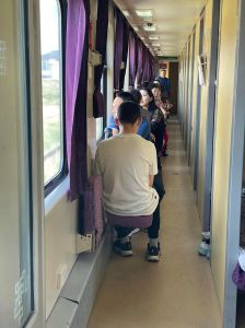 去另一個車廂看一眼硬臥,是三層無門的。最上層直接頂天花板呀