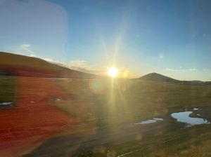 搭乘青藏鐵路,到了夜裡心跳快、微胸悶,還是有高原反應。應該是通過海拔五千公尺以上的唐古喇山群。(但懶的起來找乘務員拿氧氣管……)