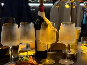 此時送上冰鎮紅酒杯與紅酒,只好…等退冰(秋冬紅酒要喝室溫,杯當然也要室溫)