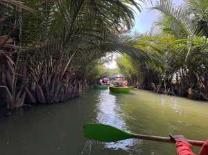 島上遍植水椰樹,穿越原始自然生態風光及體驗樂釣螃蟹。搭乘竹筒船(碗公船),全程都是人工划船。