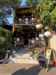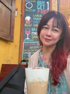 走進會安古城燈籠世界,老外很多、咖啡館更多,我在秋盆河畔喝了一杯Coconut Coffee 冰沙,超級chill~