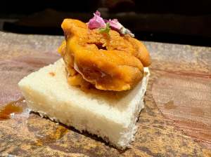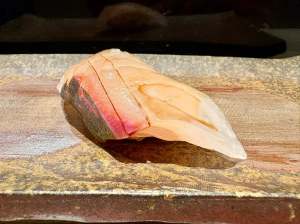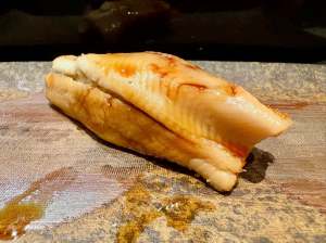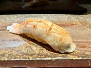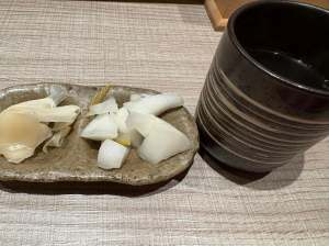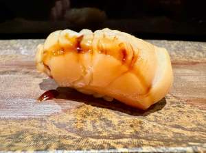 最驚艷的是加點的瓢瓜卷是老闆自己滷製的,風味不是一般現成業務用的可以比。從這道平凡的料理可以看到師傅對料理的堅持與龜毛。 硬要挑毛病就醋飯握的略緊,白身魚(紅喉)的熟成如果可以久一點風味會更足更迷人。整體來說瑕不掩瑜,難怪兩輪還這麼難訂位…