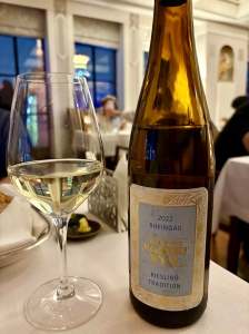 Diana拜訪過的Vouvray產區(位於法國Loire Valley的Touraine區),葡萄品種Chenin Blanc,酸度漂亮,有鹹,礦石味、百香果,很搭鱈魚。