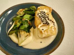 花菜, 寶塔菜, 黃瓜, 魚子醬香檳汁 Cauliflower, Romanesco, Cucumber, Caviar Beurre Blanc
