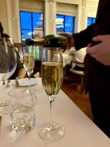 和平飯店侍酒師Sakura Li為我們倒上開胃香檳