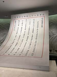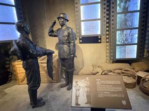 進館,第一個見到的是謝晉元團長書寫在「陸軍第八十八師師本部用箋」上給愛妻的書信,如同「林覺民與妻訣別書」一樣,在面對國家存亡之際,做了最沈痛的選擇