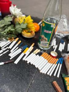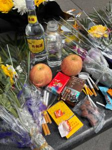 參訪這天4月5日適逢清明,民眾前來以菸酒祭奠
