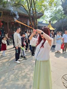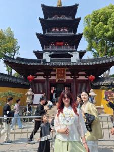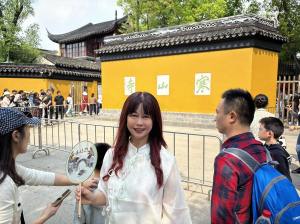 有人穿漢服在此拍攝,我是著常服加把扇子增添古意