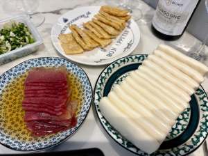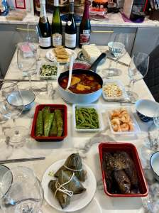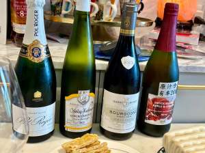 妹妹們來姊家裡,當然要幫忙喝酒呀!選了開場香檳、搭配上海菜的布根地紅酒,可以搭配鹼粽和甜點的阿爾薩斯Gewürztraminer!還有小孩可以喝的果汁氣泡水。