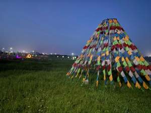 草原民族歡慶的一種形式,晚宴後舉行。篝火後,表演者隨著音樂載歌載舞,✨還有營火篝火晚會🔥大家相聚在聖火旁,跳著蒙古舞💃